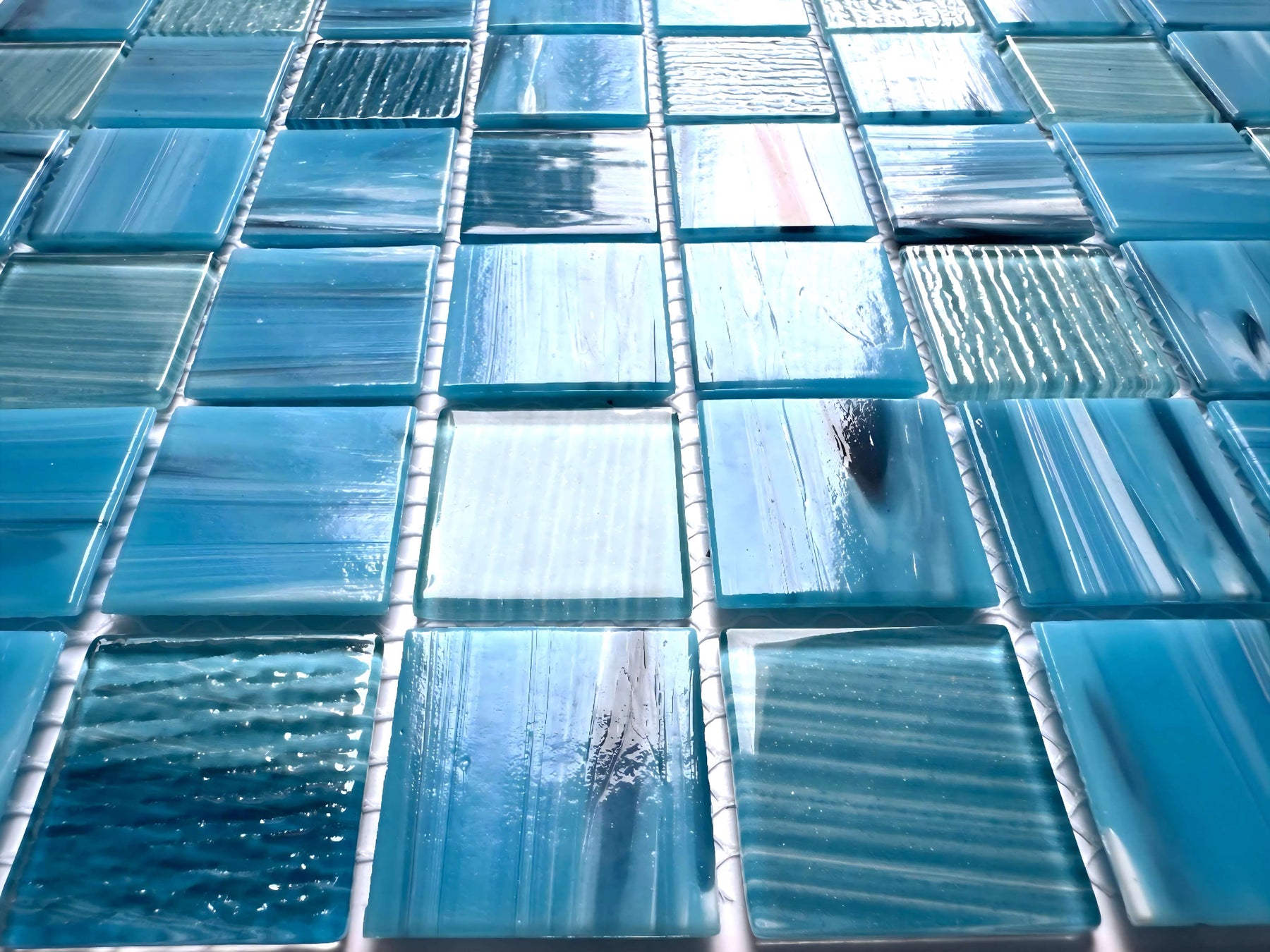 • Blue Crystal Glass Mosaic Tiles | 12"x12" Hand Painted Glass Mosaic for Pools, Kitchen Backsplash & Bathroom Shower – Luxury Finish & UV-Resistant